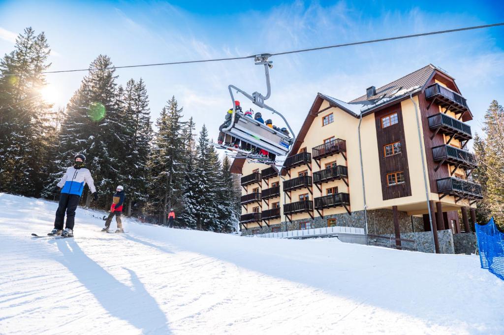 Additional features include a private sauna within the apartment for wellness relaxation and ski-to-door access complemented by ski equipment rental and ski school services nearby. Guests benefit from lift access to the room along with outdoor furniture on the balcony to enjoy scenic views.