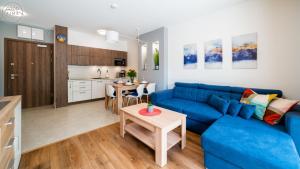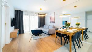 Each apartment offers one living room, one separate bedroom, and a private bathroom with a walk-in shower and hairdryer. Kitchenettes are fully equipped with stovetops, refrigerators, dishwashers, kitchenware, coffee machines, microwaves, ovens, toasters as well as electric kettles. Additional amenities include sofa beds or sofas for seating areas along with bed linen, towels, ironing facilities including irons and boards, wardrobes or closets, work desks and non-feather synthetic pillows.