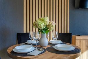 Апартаменты находятся в удобной близости от поворота «Мёртвая кривая» (2,9 км) и Динопарка (3,5 км). Расстояние до аэропорта имени Коперника во Вроцлаве составляет примерно 121 км. Окрестности отлично подходят для активного отдыха: катания на лыжах, велоспорта, рыбалки, пеших прогулок и отдыха на солнечной террасе.