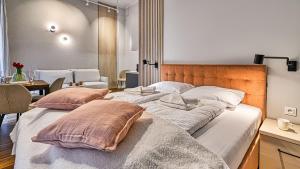 Each apartment features a living room and one or two separate bedrooms equipped with comfortable beds ranging from one to five per unit. The kitchenette areas are fully equipped with stovetops, refrigerators, dishwashers, microwaves in some units, ovens, coffee machines, toasters and kitchenware for preparing meals at leisure. Private bathrooms include showers and hairdryers while additional room amenities consist of flat-screen TVs with streaming services such as Netflix, seating areas, fireplaces in select units, air conditioning or heating depending on the season along with ironing facilities including irons and boards where provided.