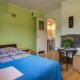 Each room features a wardrobe along with private bathrooms equipped with walk-in showers. Some accommodations offer balconies overlooking the garden or quiet street. All units come with flat-screen TVs featuring satellite and cable channels alongside free WiFi throughout the property.