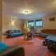 Relaks provides several guest services including a shared lounge area, packed lunches on request, and indoor play facilities for children as well as outdoor playground equipment. The kitchen amenities include kitchenettes stocked with kitchenware, microwaves, refrigerators, stovetops, electric kettles, toasters, dining tables and tea and coffee making facilities available both inside rooms or in shared kitchens. Additional conveniences include ironing equipment like irons and boards plus wake-up service.
