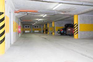 Very clean, spacious apartment had a kitchen with microwave, toaster, coffee capsules, dishwasher capsules, washing powder and hairdryer, sauna and gym were there, parking was large under the building with assigned spots and Wi-Fi with logged Netflix was available, the owner was helpful and allowed early check-in.