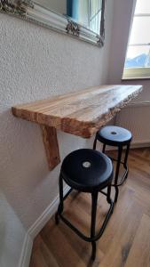 The apartment was very clean, well equipped with kitchen utensils and heating, and had a beautiful view of the mountains from the window. The location was close to the train station and a well-stocked shop, with convenient parking and a large private green yard with benches. The check-in process was simple with SMS instructions and access codes, and communication with the owner was very good.